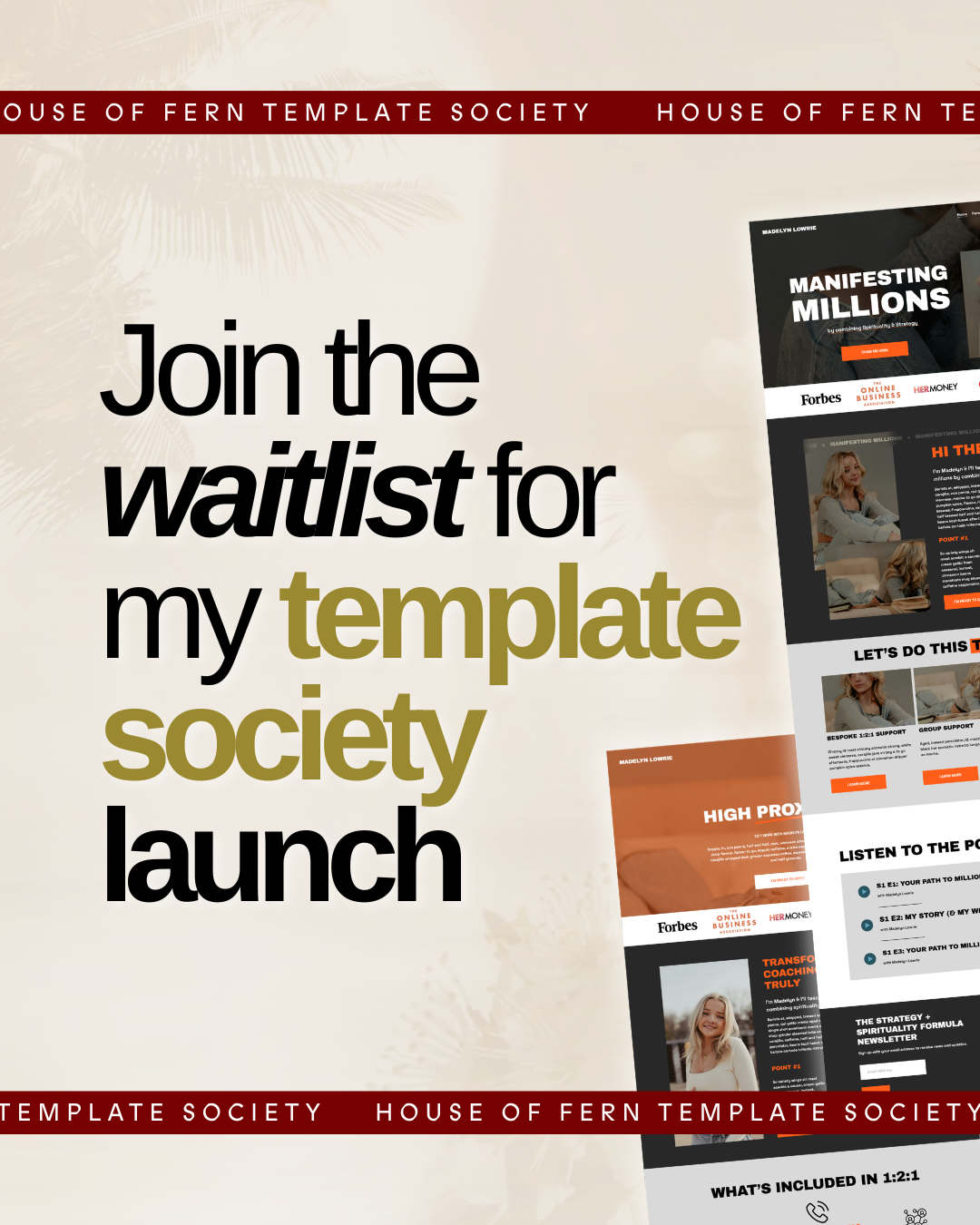 Sign up, mama; you don't want to miss how spicy this launch is about to be! House of Fern Template Society launches soon. Put in your name + email to be notified when we go LIVE.